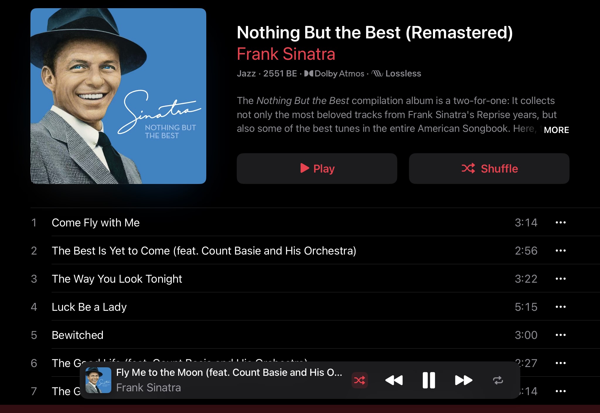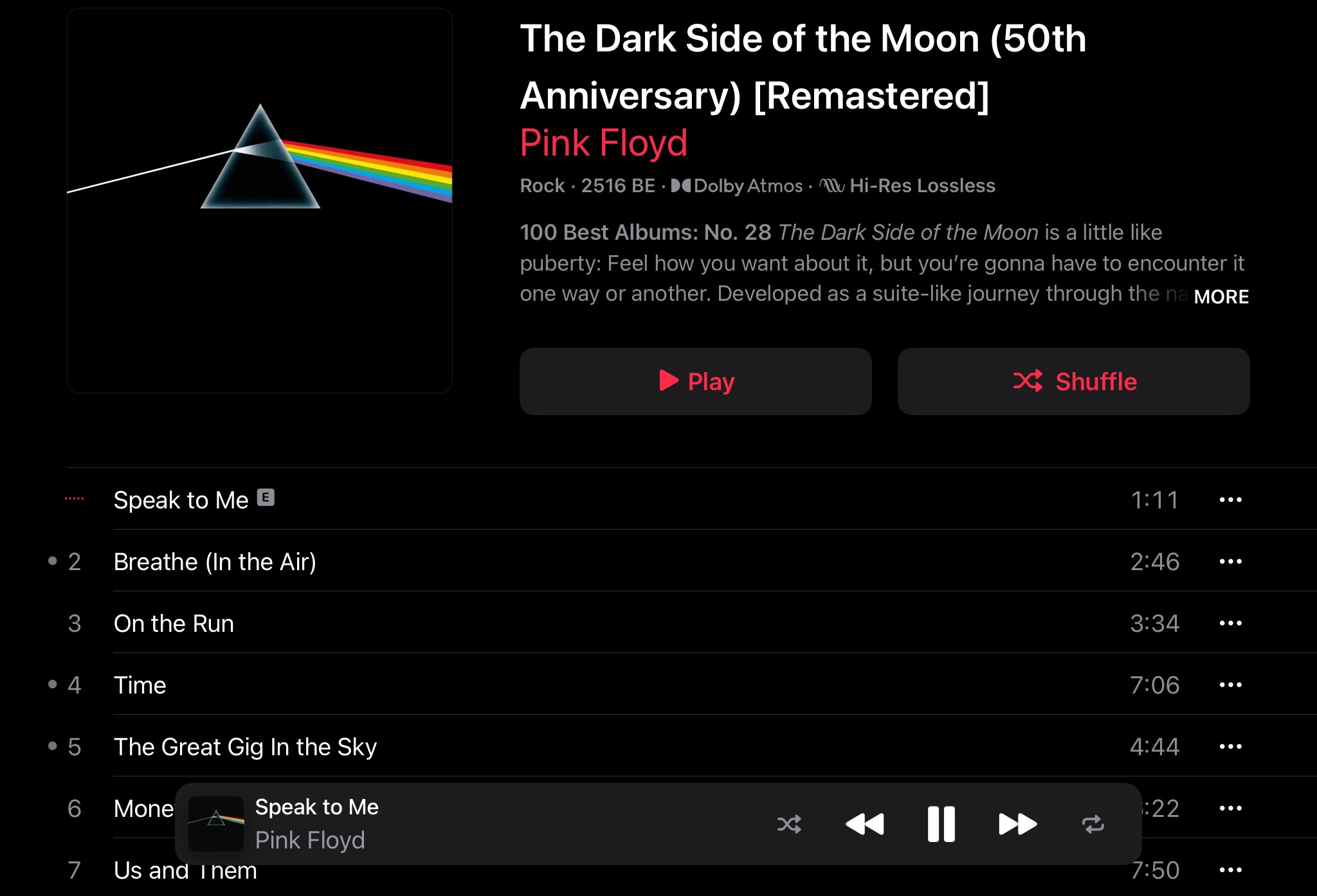จากนั้นก็ทำการ Browse เพลงที่ต้องการฟังได้เลย ในส่วนเพลงที่เป็น Dolby Atmos นั้น จะอยู่ในส่วน Spatial Audio มีทั้งเพลงสากล และเพลงไทย ซึ่งส่วนใหญ่จะเป็นเพลงสากลอยู่แล้ว ตอนนี้ อัลบั้มฮอตฮิต ในอดีต ถูกรีมาสเตอร์มิกซ์มาเยอะมากครับ ลองดูตามรูปที่ผมแนบมา ทั้ง Pink Floyd อย่างอัลบั้มขึ้นหิ้ง The Dark Side of The Moon 50th Anniversary หรือศิลปินท่านอื่น Frank Sinatra , Mile Davis , Billy Joel ฯลฯ ยิ่งศิลปินยุคใหม่ ไม่ต้องห่วงมีให้ฟังแน่ๆ อย่าง เทเลอร์ สวิฟท์