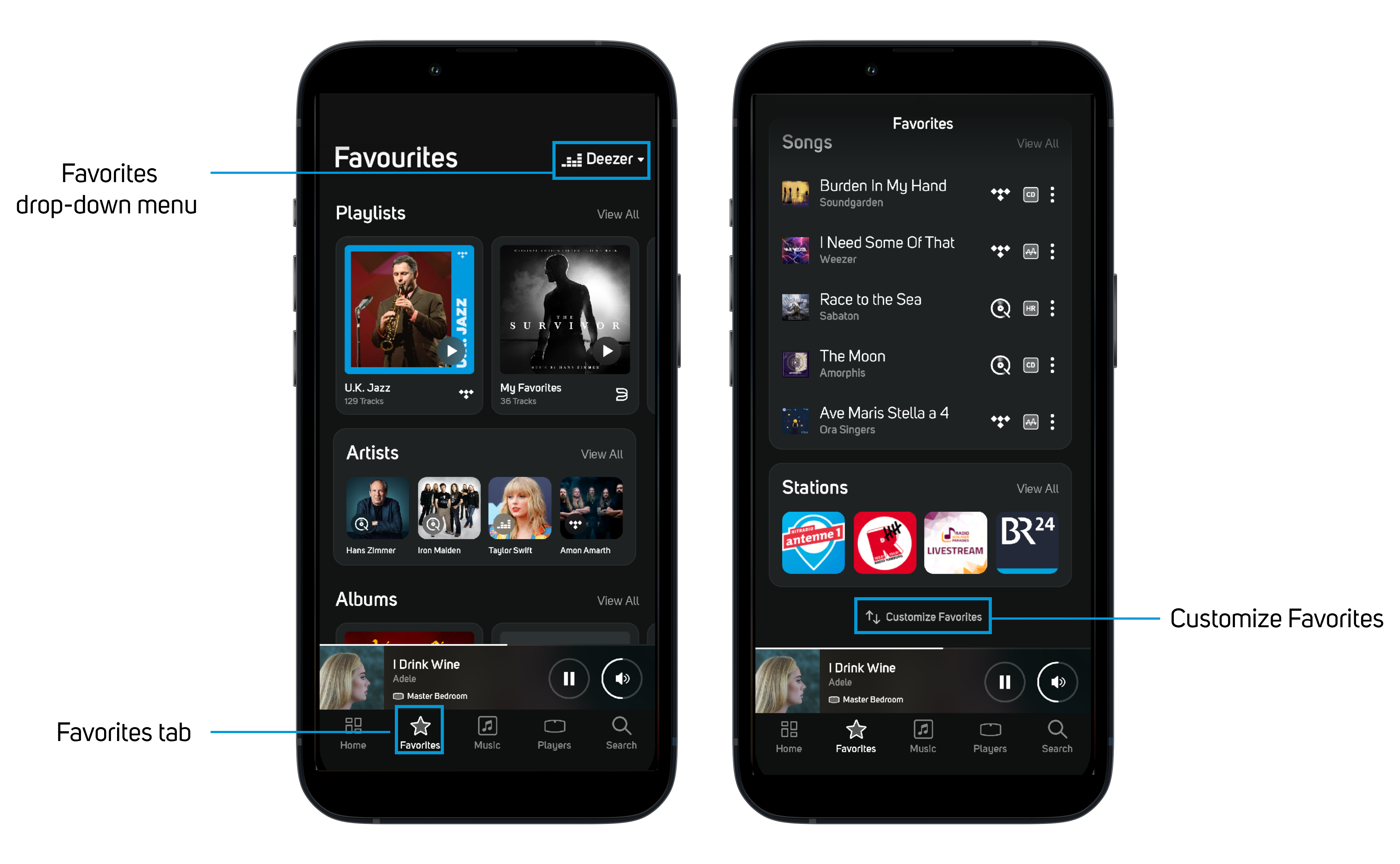 ในส่วนแท็ป Favorites สามารถตั้งเอาสตรีมมิ่งเซอร์วิสที่เราฟังบ่อยๆ มาไว้ตรงนี้ได้เลย